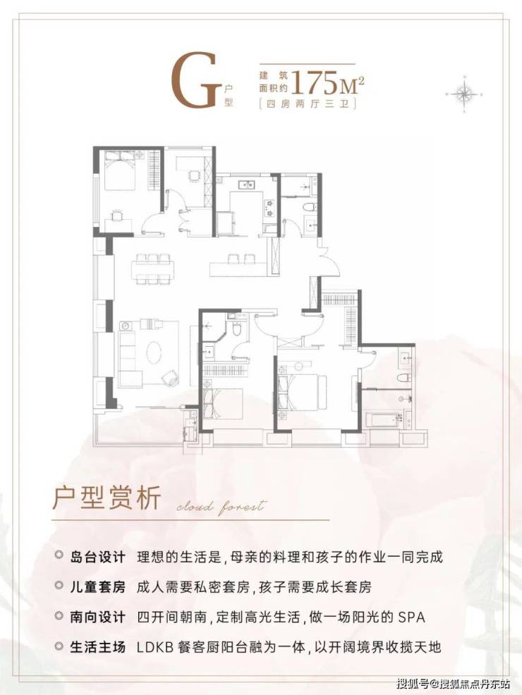 建面约175㎡4房3卫,几乎是上海改善的终点户型。