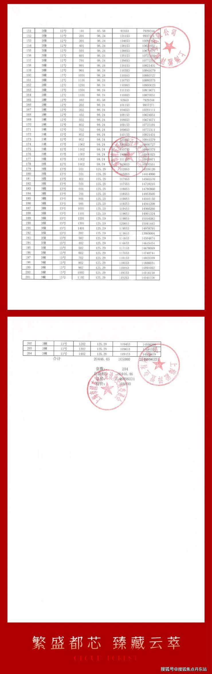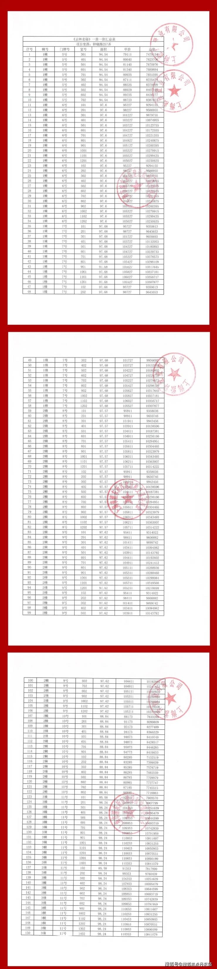 项目一房一价表