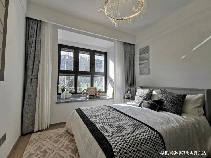 U型厨房,操作台与厨房动线符合人体工学设计,转身之间,洗、切、烹、炒流畅便捷,与餐客厅形成一条笔直的居家生活动线;三间卧室全附带飘窗,拓宽了景观视野的同时,增加了实际空间使用率;南向主卧做了带独立卫生间的套房设计,仪式感和私密性更强。