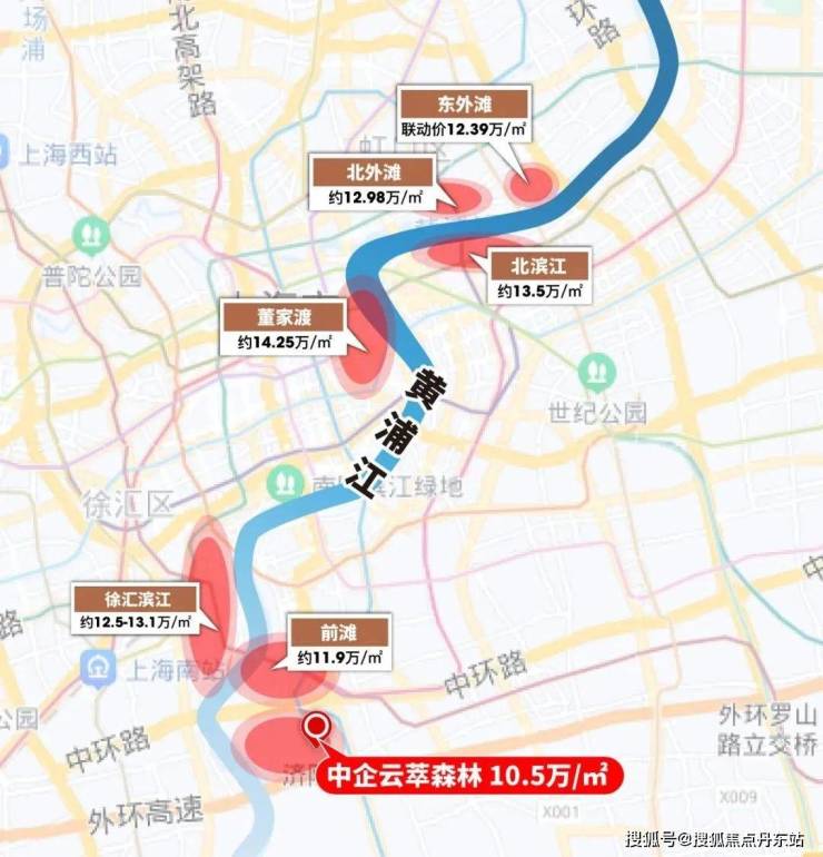 论居住价值、论地段价值、论规划潜力、论发展资源倾斜程度,黄浦江沿岸永远都站在上海无法逾越的高空之上。这点从沿岸的新房价格中就能看出来: