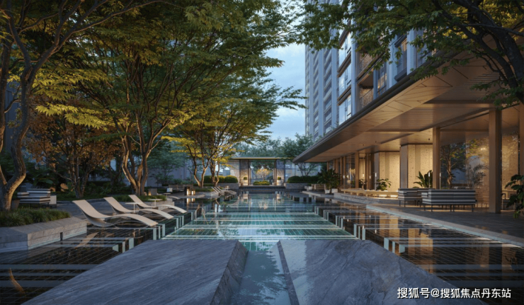 中環置地望雲力邀大师匠造,打造“微度假“式景观园林,内外双园联动打造超级绿地界面,大师灵感规划双轴四芯,奢享四重归家礼序,可游、可观、可感的自然场景,营造“经典·华丽·松弛”的度假式归家体验。