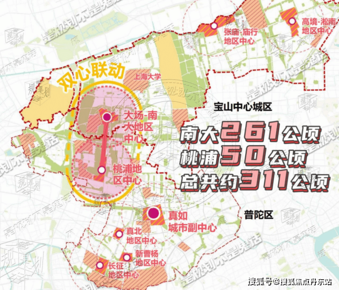 而南大与桃浦两大地区中心的“双心联动”,使得它们总共拥有约311万平方米的公园绿地,成为上海中环上最大的楔形绿地。
