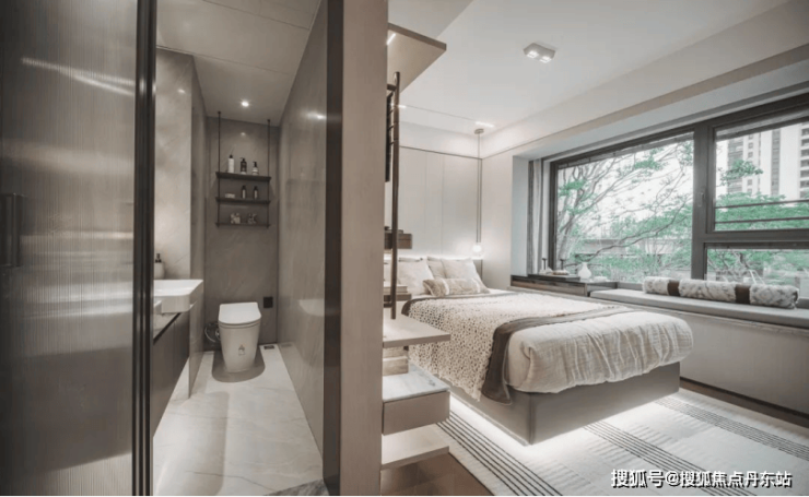 每一间卧房皆设飘窗,为每一颗热爱生活的心,预留一方浪漫天地。主卧参考酒店式套房,拥有衣帽间和独立卫浴间,尊重日常生活的私密感。与此同时,卫浴间飘窗附设壁龛,可用于收纳,增加实用性。