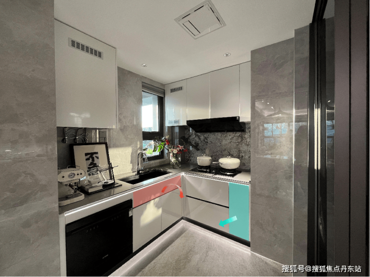 厨房采用了上悬轨移门,扫地机器人进出无阻,让业主告别积灰的烦恼。