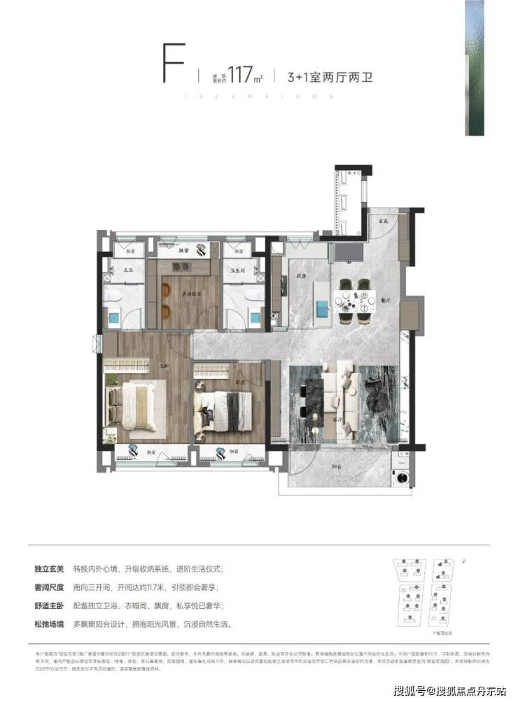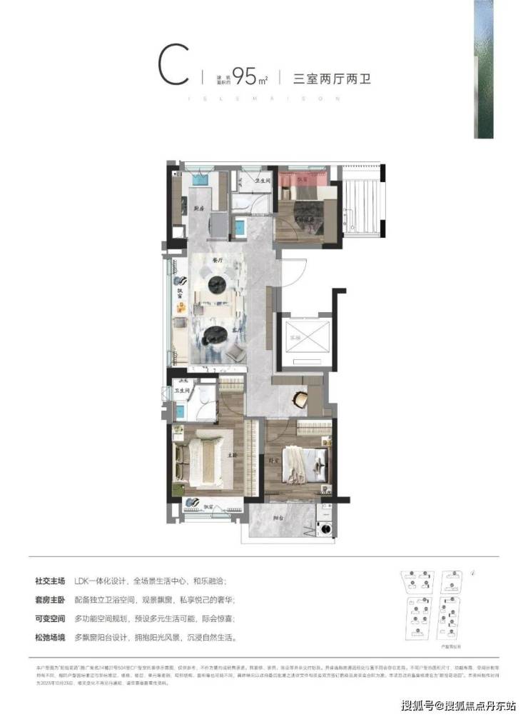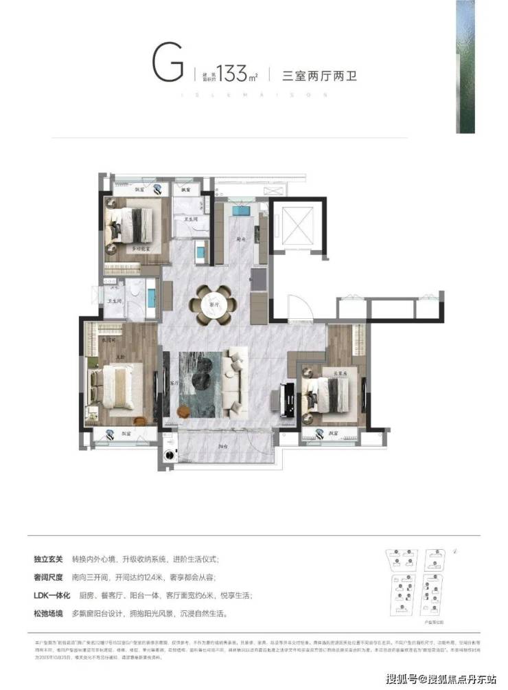 除此之外,3房2卫多飘窗的设计更是让这个户型的视野延展更上一层楼。