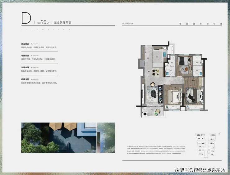 建面约95㎡3房2卫三开间朝南,整体的南向尺度感非常出色。