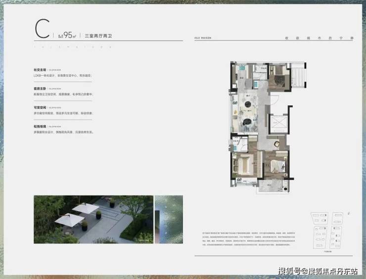 建面约95㎡的3房C户型也是边套,除了客厅的宽景飘窗外,C户型还拥有一个可用作储物空间的灵动空间,可以满足生活的更多需求。