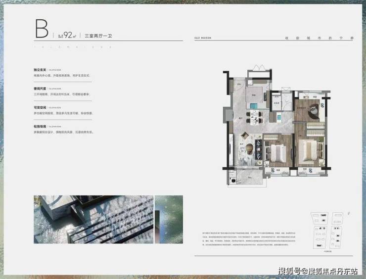 建面约92㎡的3房B户型,整体三开间朝南,3卧室2飘窗1阳台,并且室内没有过多的转角和过道浪费空间,所以不管是采光、视野、通风还是尺度感都可圈可点。