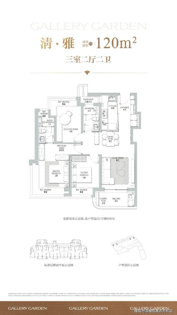 首先聚焦建面约120㎡户型,三房两厅两卫设计,是约112㎡3房的升级版。