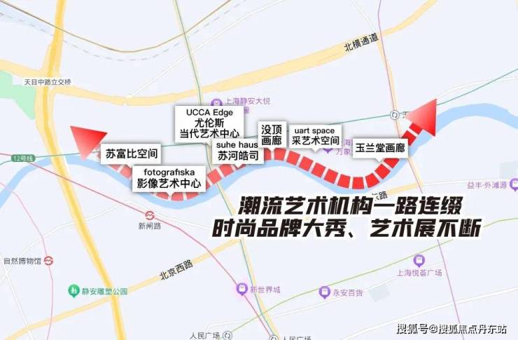 项目距离苏州河步行可达,饭后散步刚刚好,一路上有不仅有大悦城、万象天地等商业,更点缀着没顶画廊、suhe haus苏河皓司、苏富比空间等艺术机构,整个街区充满浓郁人文艺术氛围。