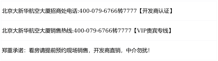 北京大新华航空大厦租赁中心电话:400-079-6766转7777
