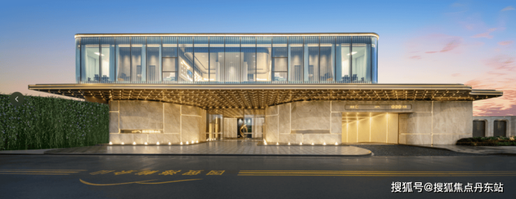约60米度假酒店式大门,如同截取了一段辽阔的金色海平面,营造具有强烈海洋美学风格昭示性的形象封面;以彩釉玻璃打造的「蔚蓝光厅」,仿佛一座“漂浮”于大门上空的“海市蜃楼”,夜晚在定制的暖色灯光映照下,恍如邂逅一片霞光下的沙滩。