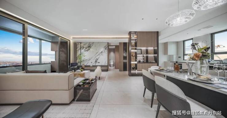 餐客一体的户型设计,利用餐客厅互补的空间和视野,在功能独立的前提下实现尺度的人性化,兼具明亮与开阔,兼容多变的家庭生活场景。