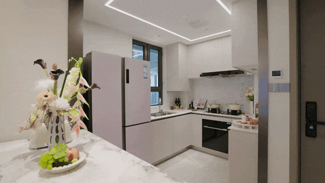 U型厨房缩短了洗、切、烹的居家动线,可以容纳双开门冰箱,更加匹配时代青年的生活需求,让时光更加便捷从容。