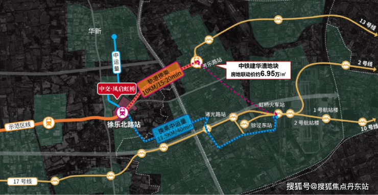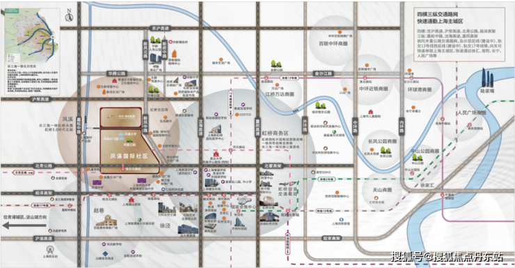 中交·凤启虹项目以示范区线的徐乐北路站TOD为核心,连接了17号线和25号线(规划),形成了一个四横三纵的立体交通网络,为上海主城区提供了快速的通勤通道,直达长三角的都市区域。