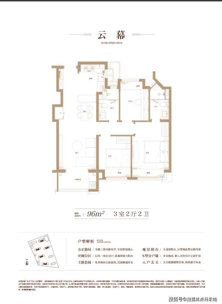 相当于96㎡三房户型的放大进阶版,四开间南向结合舒朗的方厅,大尺度的面宽,采光一流,主卧带衣帽间,女主人福音!