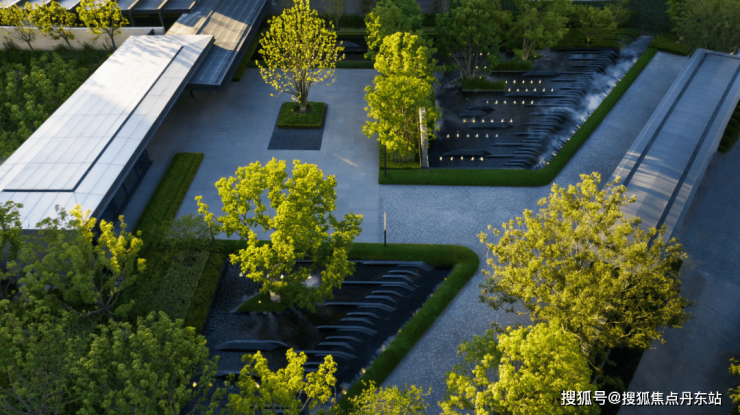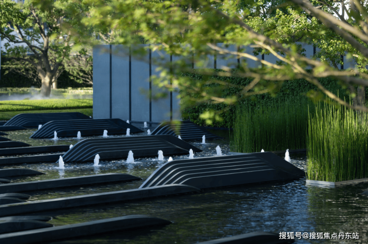并通过跌水、涌泉和镜面水景等水景组合,使整个项目空间更灵动,也与黄浦江形成内外呼应。