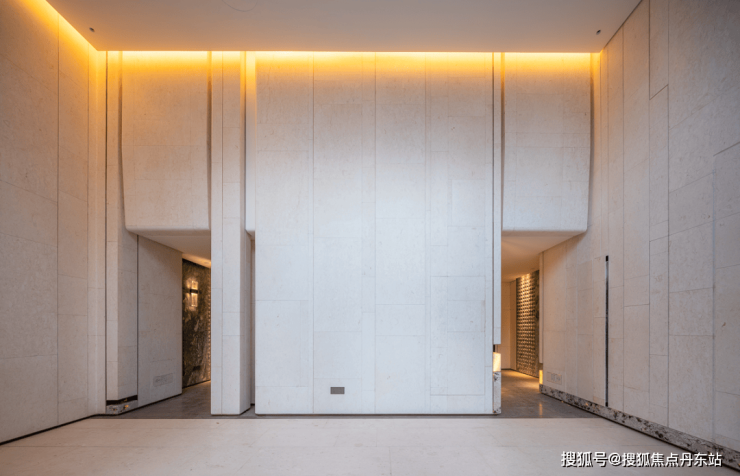 奢石内外贯穿,通过约5.3米高的洋房大堂,走进电梯轿厢,墙面都采用瑞士翡翠奢石,视觉高级,触感细腻温润。