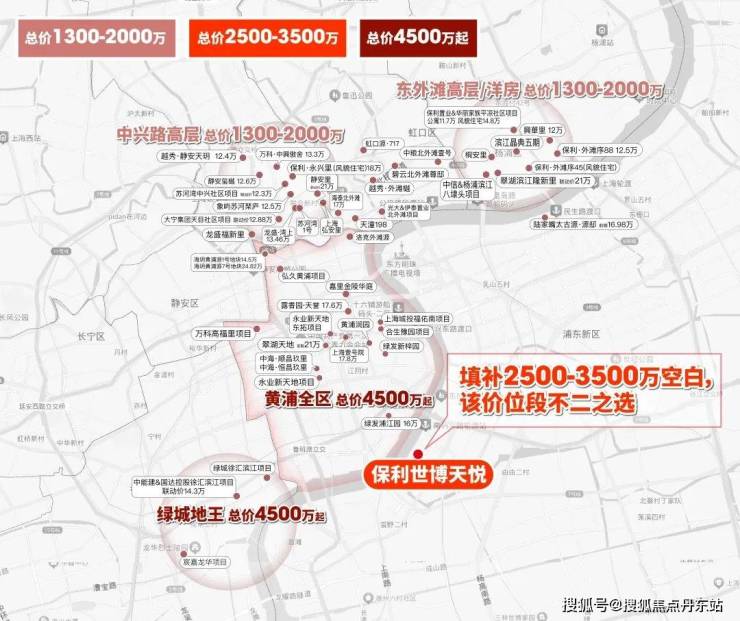 2025年顶豪主要分布在黄浦以及徐汇滨江,约4500万起步;