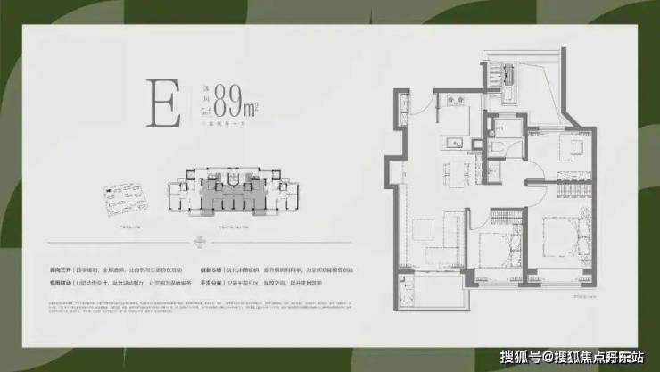 1、全部南向大面宽设计,保证最为出众的采光和视野需求;