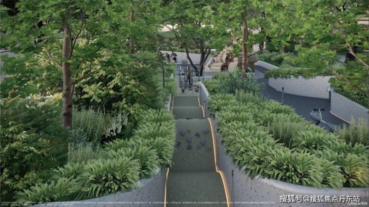 一路定制的游园式归家动线,让业主目之所及均为风景;中央会客花园内,绿植四季皆景,中央庭院景观轴上,则布局双下沉式庭院增添社区精致错落的氛围,提升归家仪式感的同时,给予业主家的温馨。