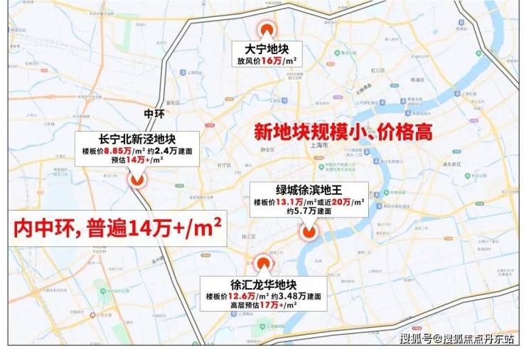 刚过去的八批次土拍,开发商激烈抢地。其中徐汇龙华地块,约3.48万建面,楼板价约12.6万/㎡,高层预计奔17万+/㎡;长宁北新泾地块楼板价8.85万/㎡,约2.4万建面,预估14万+/㎡。