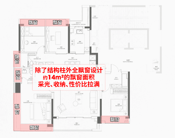 一方面,约14㎡的飘窗赠送面积是实打实的,这个性价比真心很赞。