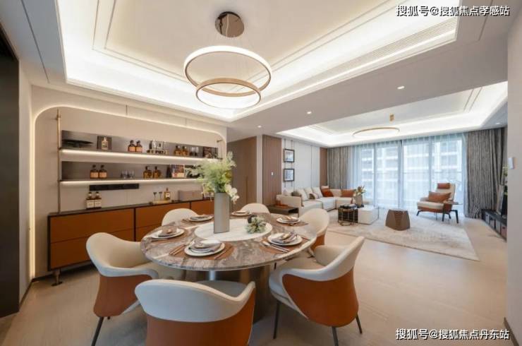 客餐一体化设计,让空间更加开阔通透,无论是家庭聚餐还是朋友聚会,都能轻松容纳,共享欢笑与宁静。
