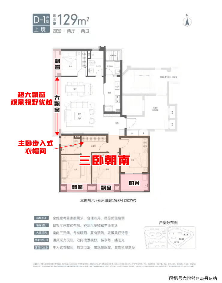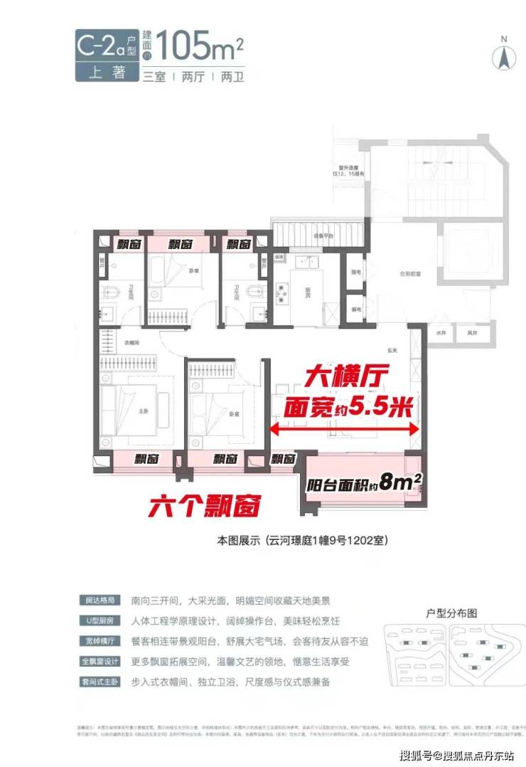 该户型相比传统三开间(只能南北观景)有一个很大优势:多一面采光面,能达到270°环幕采光和视野。