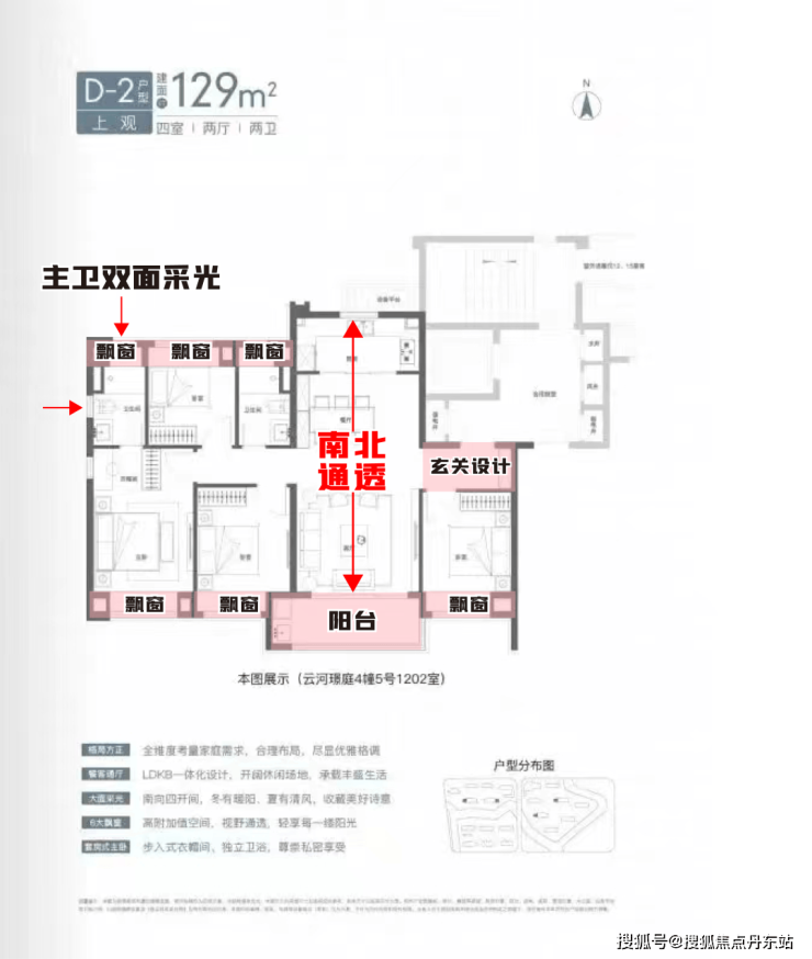 六飘窗设置也很好延展了室内空间。值得一提,主卫还是双面采光,这在同级户型中非常少见。