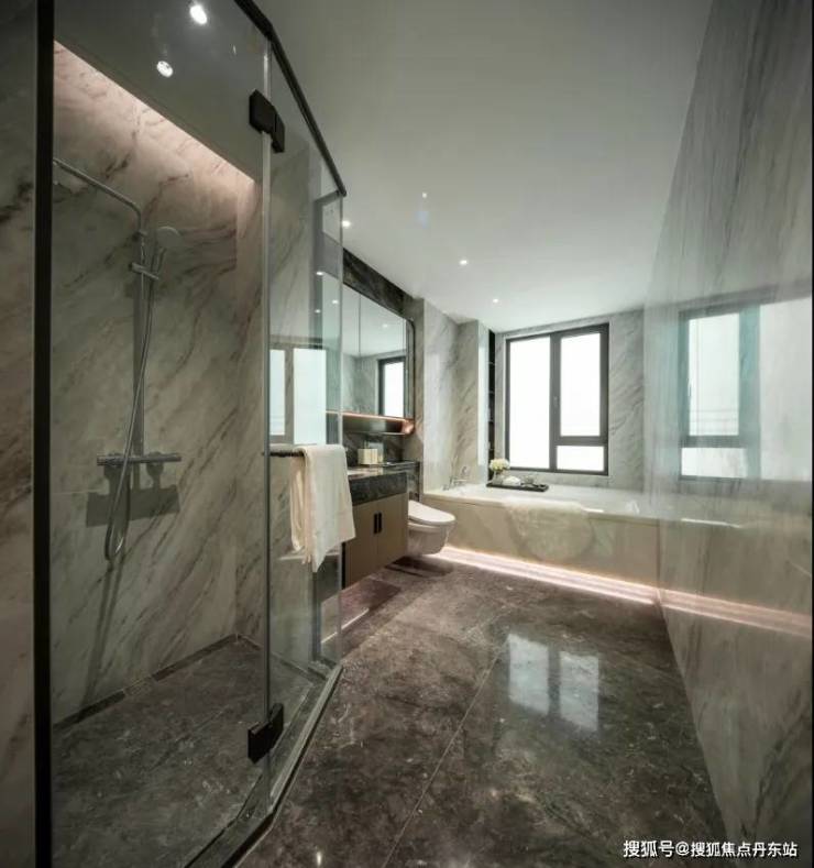 私密性上:主卧套房的设计,独立的卫生间甚至容纳了淋浴房与内嵌式浴缸,保证了主人的私密空间。