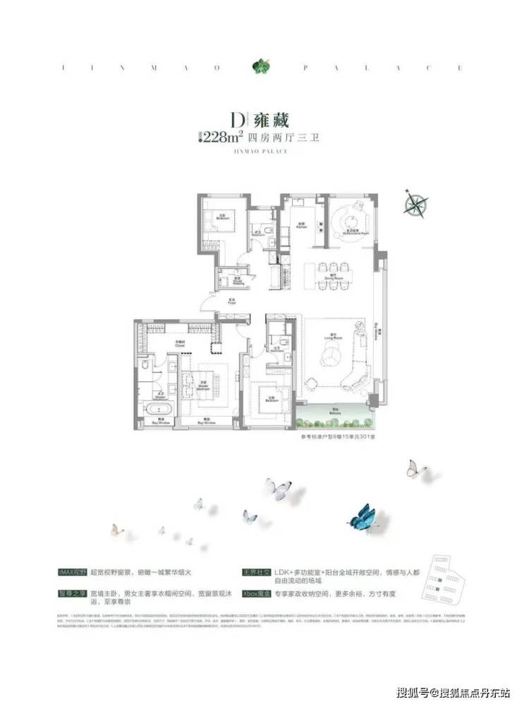 最后,除了建面101㎡3房、168㎡4房产品外,项目还有建面约193-228㎡房源,来看户型图:
