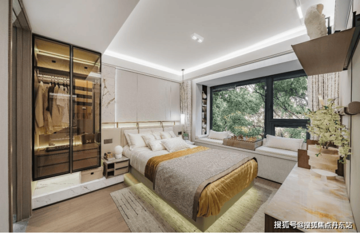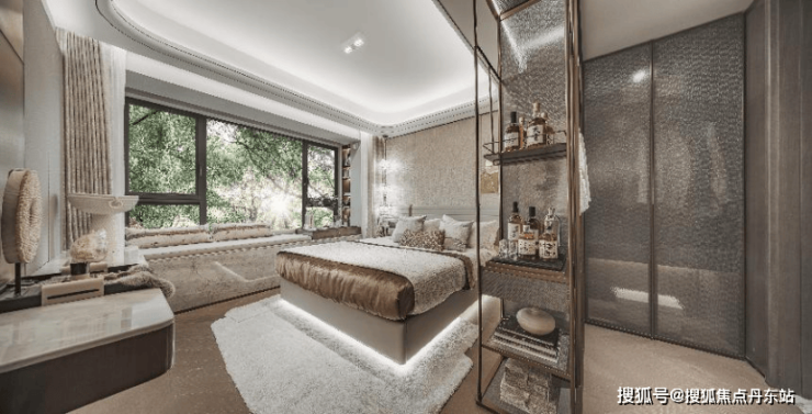 每一间卧房皆设飘窗,为每一颗热爱生活的心,预留一方浪漫天地。主卧参考酒店式套房,拥有衣帽间和独立卫浴间,尊重日常生活的私密感。与此同时,卫浴间飘窗附设壁龛,可用于收纳,增加实用性。