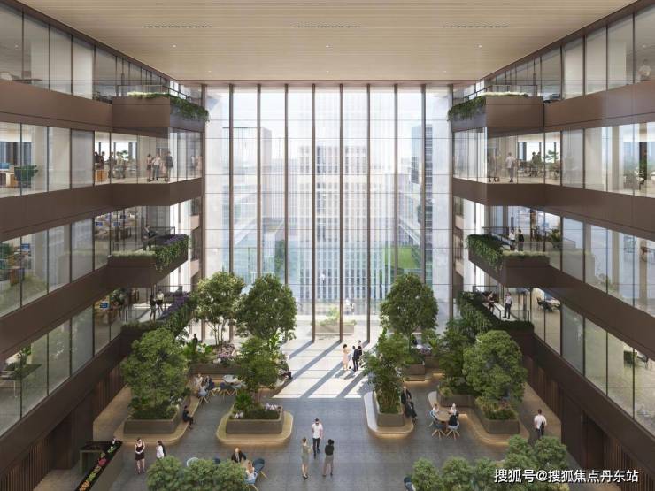 维晟中心创新性地规划了多达6个共享中庭,每3至5层即嵌入一座约20米高的“垂直绿洲”,且每个中庭东侧均连接室外露台,构筑出内外交融的立体社交空间。项目将约12%的建筑面积用于主题多元的共享区域,远超行业标准。